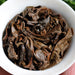 This particular tea cake is composed of a mix of somewhat rough leaves and tippier 2 leaf to 1 bud sets.  The cake's compression is medium (tight for a stone pressed cake) and comes apart pretty easily.  The brewed tea is very sweet, with some mild astringency and no bitterness.  Tea color is orange-red and quite soupy, but clear.  Cha qi is soothing but noticeable.  Complex taste, very unique from other teas we have sold!