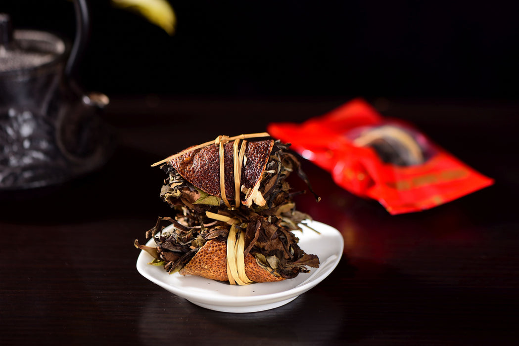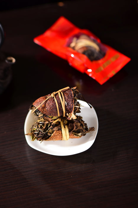 Fuding "Three Treasure" White Tea in Tangerine with Rice Stalk