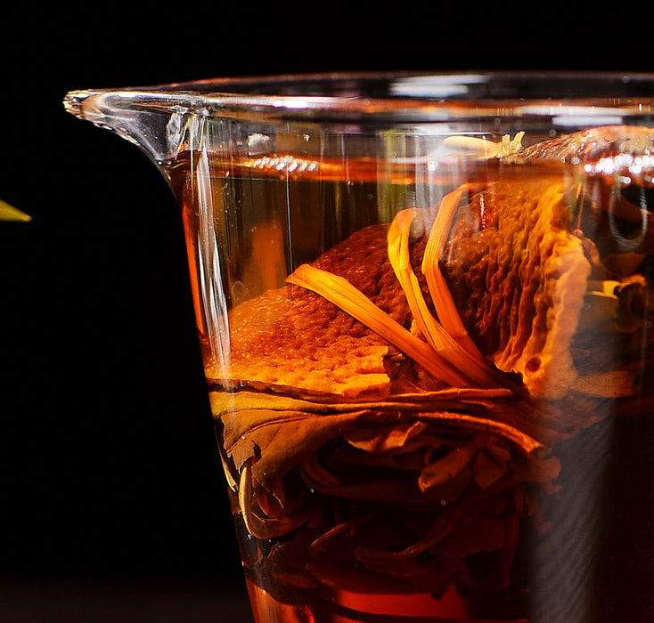 Treasure White tea brews a deep orange tea soup with notes of honey and citrus and is very smooth and lubricating! It can be brewed many many times and still give flavor and takes very hot water was well.